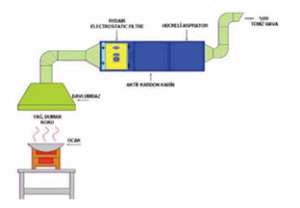 -Elekrostatik Filtreler: Her türlü kirletici, kaynak dumanı ve gazları, yağ, yağ buharı, toz ve duman, lehim dumanları, dizel dumanı, yemek dumanı ve yağı, toz ve polen, 0.01 mikron partiküller dahil diğer tüm kirleticeleri bloke eder. Sisteme harici olarak dahil edilen aktif karbon filtre veya UVC ozon filtre sayesinde koku gidermede de %99’a varan başarı elde edilmektedir. Kanal sistemlerinin yapılamayacağı mahallerde uygulanan bir sistem olup, pahalıdır.
